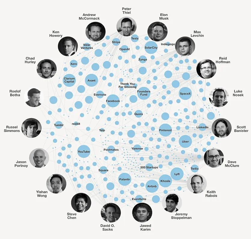 In Silicon Valley they talk about the Paypal Mafia. Of the top 19 execs that started at Paypal, they have jointly gone on to found, invest or advise a whole generation of new companies together. They have been involved in Tesla, SpaceX, Facebook, Xero, Stripe, OpenAI, Pinterest, Uber, Linkedin, YouTube, Evernote and others. This just shows the power of the community, and it's replicated a hundred times over, as the same thing happens at every other successful software company in California.