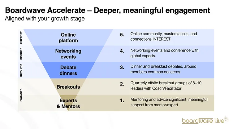 At Boardwave, we recognise the immense potential of our members and are dedicated to helping them achieve their growth goals. Our new Accelerate Programme is designed to provide tailored support to CEOs and founders at different stages of their growth journey. This programme will offer: